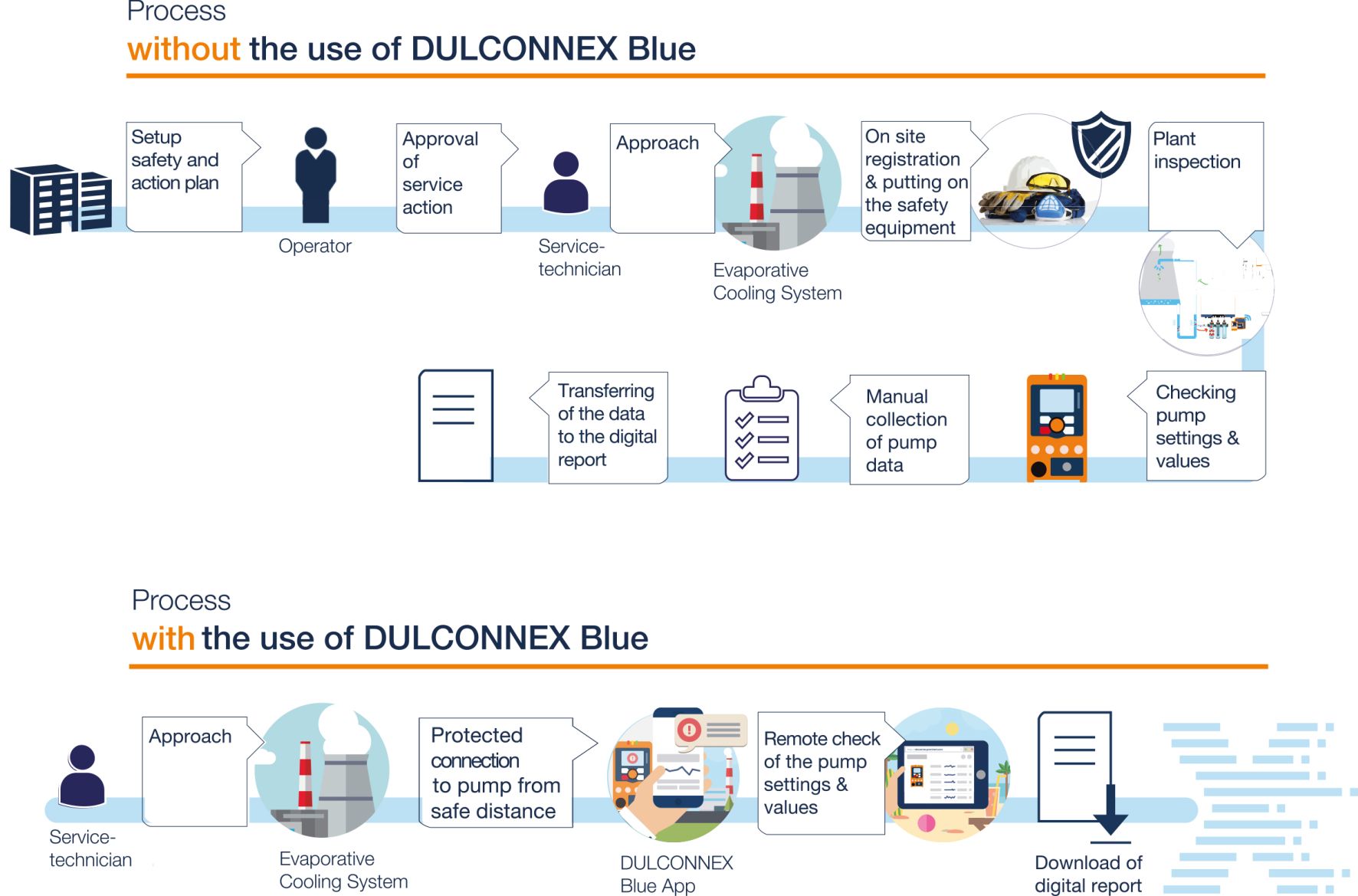 A concrete example illustrates what digital remote monitoring means in practice: SUEZ Water Technologies & Solutions France uses a cloud-based solution with app control for the operation of evaporative cooling systems. Due to Legionella protection requirements, these systems may only be entered whilst wearing protective equipment. The previous service process was correspondingly time-consuming.